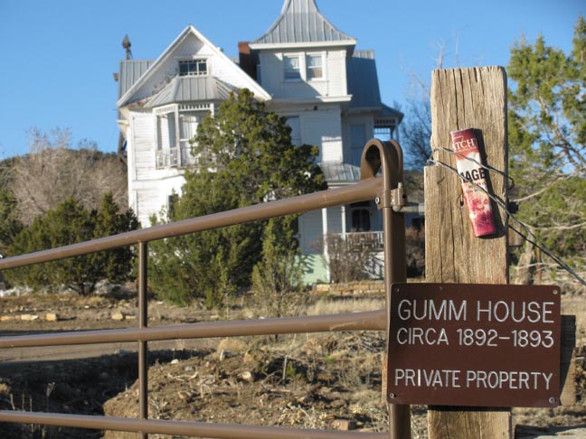 sampled the flammable “Snake Bite” -- you can see the big bottle in the photo above, to the left of the T-shirts on the counter -- so I took the keys) to the cemetery to say hi to everyone. So many old head "stones" -- half were of wood with the writing washed away. But I did find the markers for Mrs. McSween from the LCW, and Deputy Bell. White Oaks used to be a booming town for mining, but now there's isn't much left but a few citizens and a famous saloon.